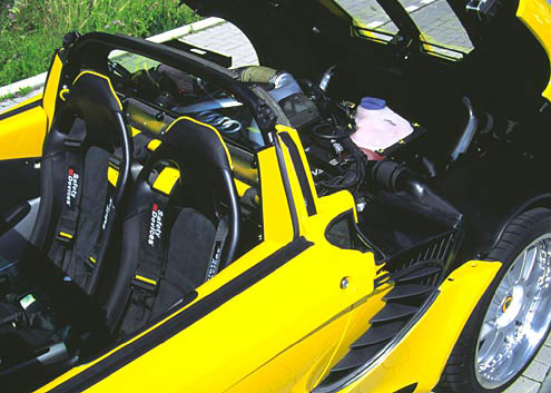 At the small-series-producers' first project the excellent lightweight properties of the basic vehicle Elise meet up with engines of 173 kW (235 HP) or 308 KW (420 HP) respectively.