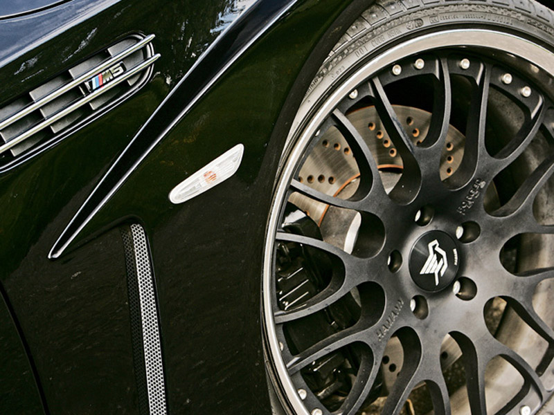 Apart from its fabulous handling, the BMW M5 has a great secondary ride-thanks to well-chosen springs and a perfectly calibrated active damping system. Not wanting to upset such a fine ride/handling balance, Hamann has opted for a carefully-rated lowering spring set that drops the ride height 1.2 inches in front and one inch at the rear.