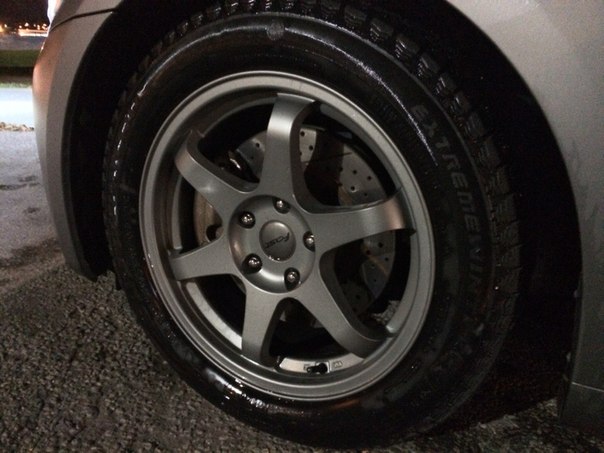 Brakes R1Conceptz Crossed drilled and slotted with ceramic pads, G are known to have terrible braking at high speeds with OEM system which mainly start's shaking and overheating even with brand new rotors in about 10k of driving, so it's a good bonus.