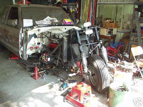 Custom built truck trike, body off of a 92 chevy ext cab. Has a dent in right door and a dent over right door. Engine is a 305c.i. with an automatic transmission floor mounted shifter Runs good. All glass is good. Bed is 4'x4' mesquite wood. Main frame is 2" x 6" tubing, Front end is 2" sq tubing with 1/4" walls. Neck is made up of 2 trailer axles in a well drilling pipe, 10 ply front tire. drive shaft has been shorten. Exhaust is all hooked up. rear air shocks and sway bar. Brakes are disc front and drum rear. All wiring is hooked up except gauges. Have all paperwork for donor and parts.