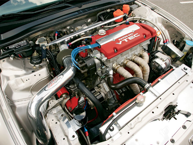 Air is drawn in through a K&N filter and sent down a 3-inch 5th-gen. Prelude AEM intake, past the STR throttle body to a manifold that's been port matched to the head. The combustion event is further augmented with an MSD SCI ignition and Blaster SS coil and an A'PEXi VAFC fuel controller piggybacking on the stock P13 ECU. Exhaust gases are then sent down a JDM RS*R EXMAG header, through a Catco converter and ultimately out RS*R EXMAG plumbing.