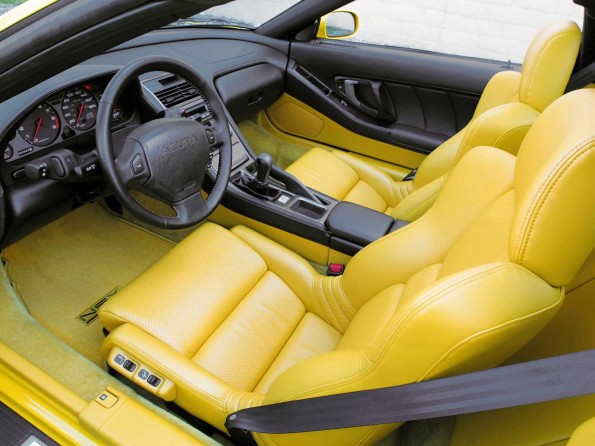 The NS-X was the first production car to feature an all-aluminium monocoque body,[4] incorporating a revolutionary extruded aluminium alloy frame, and suspension. The use of aluminium in the body alone protected nearly 200 kg in weight over the steel equivalent while the aluminium suspension saved an additional 20 kg; a suspension compliance pivot helped maintain wheel alignment changes astatine a near zero value.[5] Other notable features included an independent, 4-channel anti-lock brake system; titanium connecting rods in the engine to permit reliable high-rpm operation; an electric power steering system;[6] Honda’s proprietorship VTEC variable valve timing system (a first in the US) and, in 1995, the first electronic throttle control fitted to a Honda.