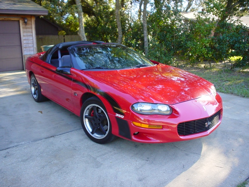 those aren't the hockey stripes that I was going to get, caleb. I was going with sprewell which goes all the way to the back. (the ones on the red camaro) The wheels I have now are CRAP. there is no other way to put it. They are cheap. I called the company because I was so dissatisfied with them, and found out, guess what, they are discontinued. wonder why? They are pitted and even though I used textured spray paint to help, they still look like crap. They were once black chrome, that peeled off in one year. The were sandblasted to remove the leftover chrome, and were so cheaply made that the sandblasting made them pitted. I feel they are really holding the car back at the shows. Nice car, but crappy wheels. When its nice, I'll take a close up picture of them(if my digital camera starts working again). So I need something to make the situation a little better. This picture you can tell a little bit of the pitting:
