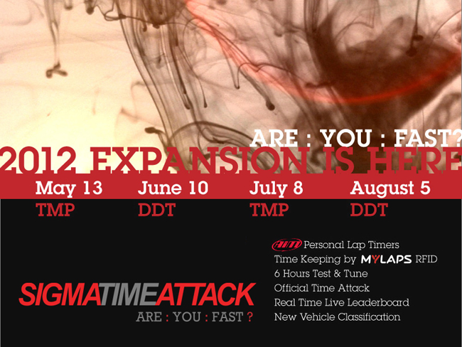 Also come out and enjoy the debut of SRTA's Gran Turismo 5 World Challenge (GT5WC). For more information: www.sigmatimeattack.com